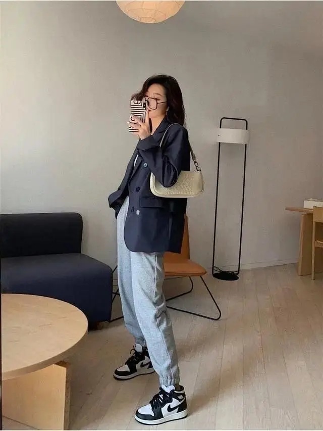 众多身形娇小的朋友选运动裤时,常误以为裤腿越长越能拉长腿部线条,实则不然。过长裤腿易显累赘,让整体造型拖沓不精神。相反,束脚款式运动裤或裤腿恰好遮盖脚踝长度的,与西装外套搭配,能展现别样利落与飒爽,凸显身材轻盈,流露时尚态度。